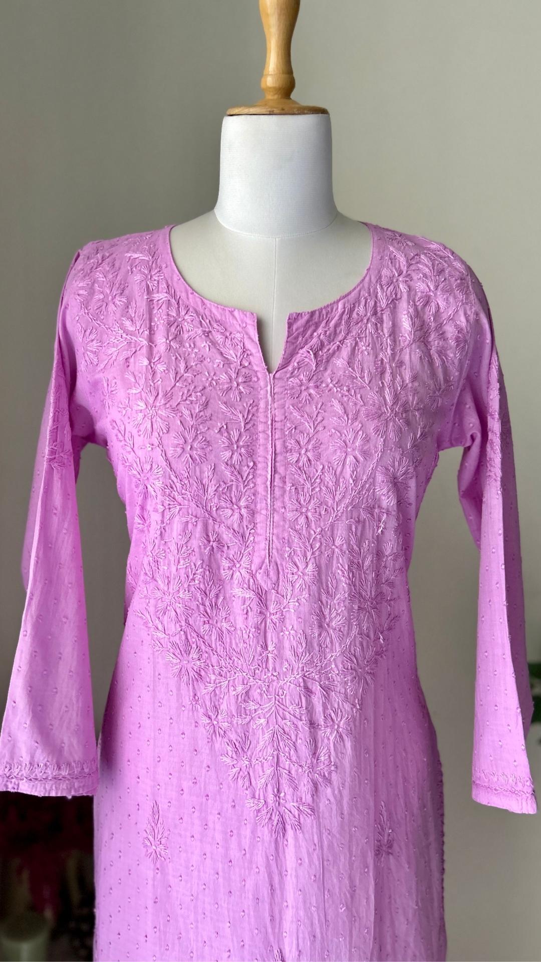 Mal Mal Cotton Chikankari Long Kurta - Lilac