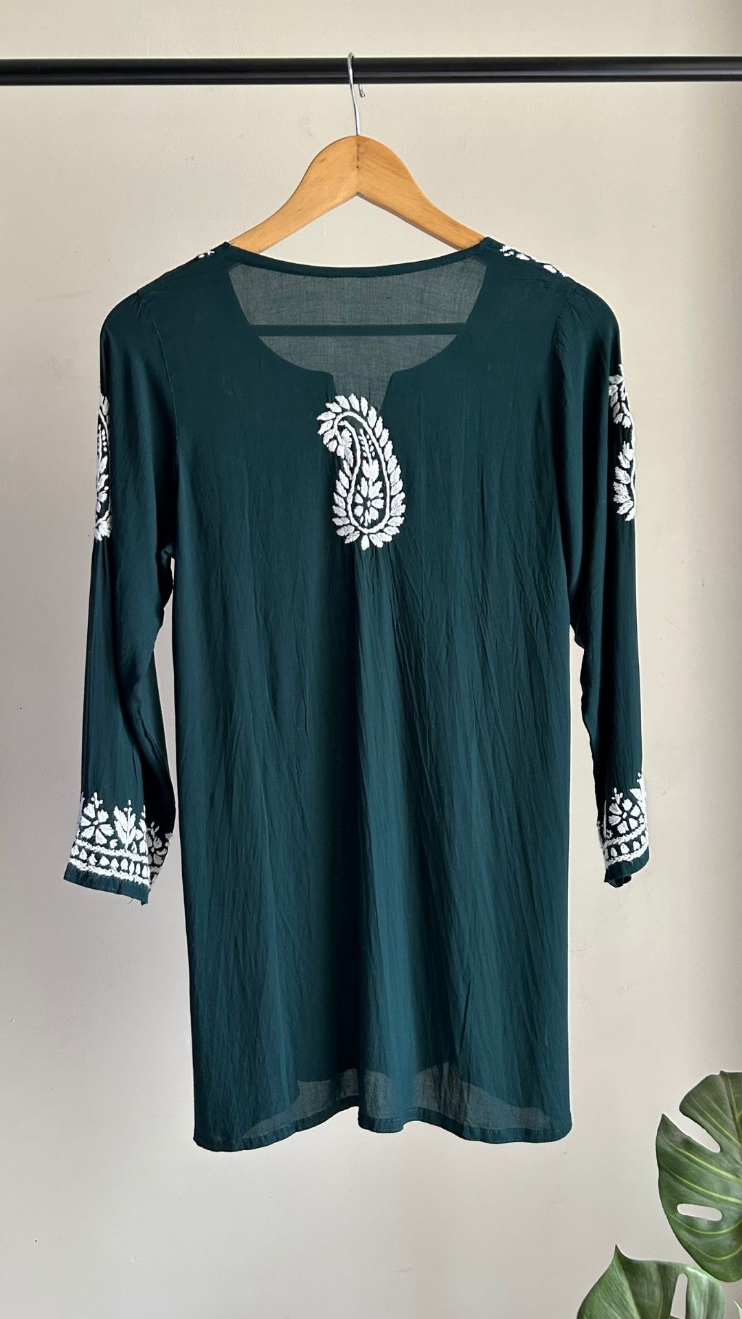 Modal Chikankari Short Top - Bottle Green