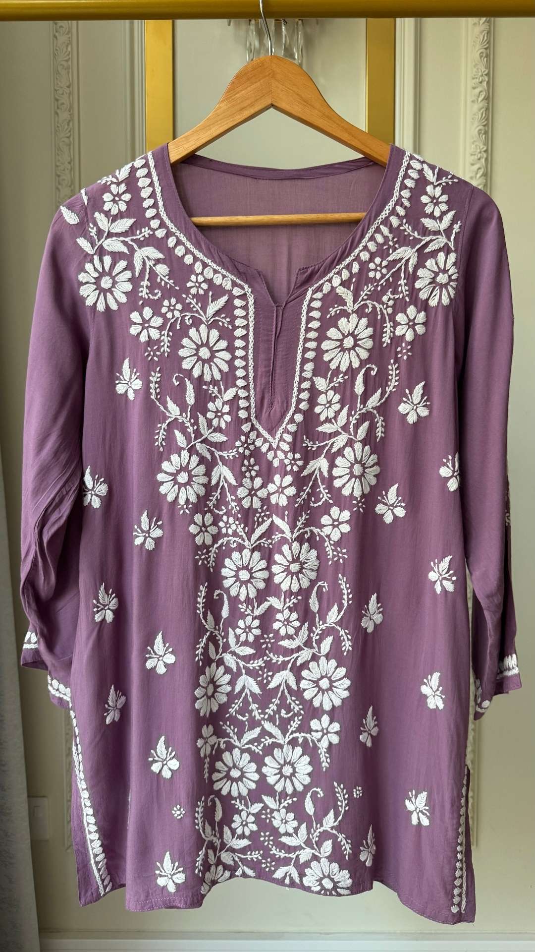 Modal Chikankari Short Top - Mauve