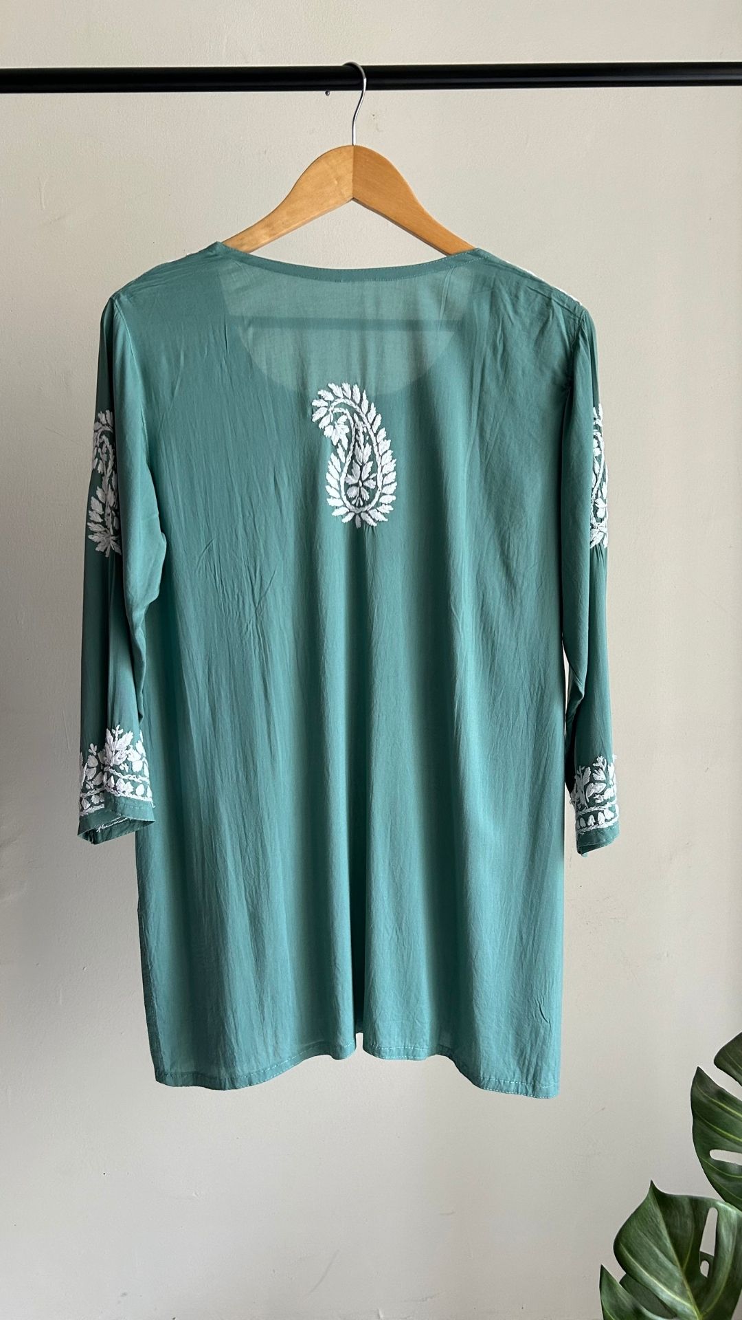 Modal Chikankari Short Top - Pastel Green