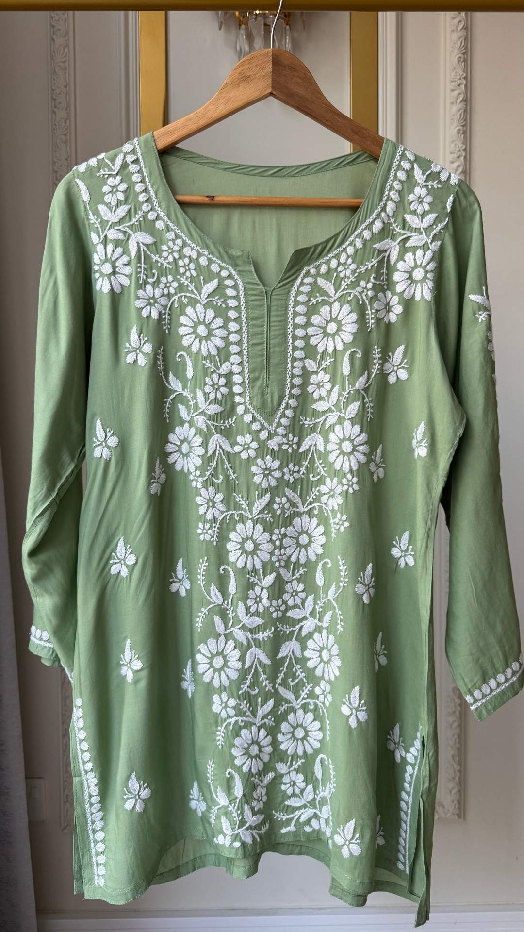 Premium quality modal short top with handmade chikankari. Butter soft texture and lightweight as feather