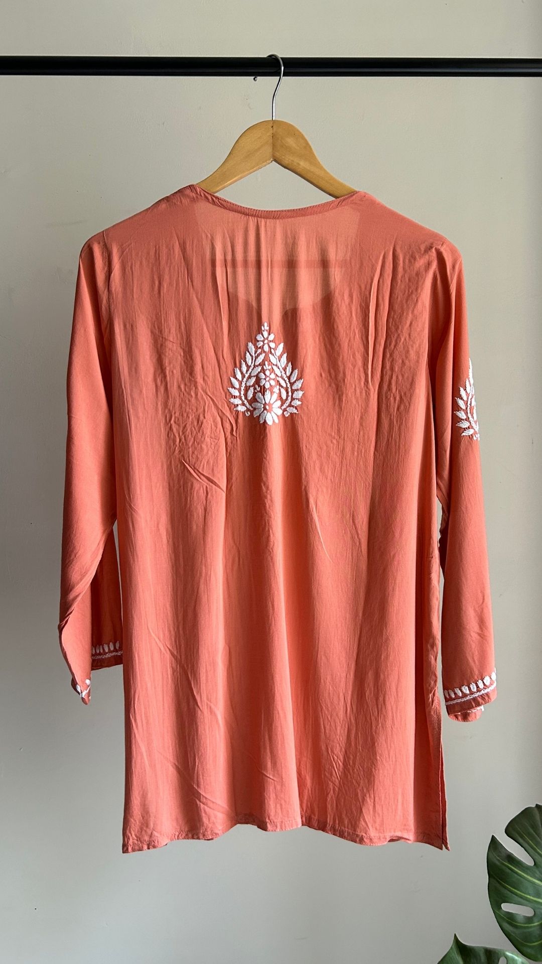 Premium quality modal short top with handmade chikankari. Butter soft texture and lightweight as feather