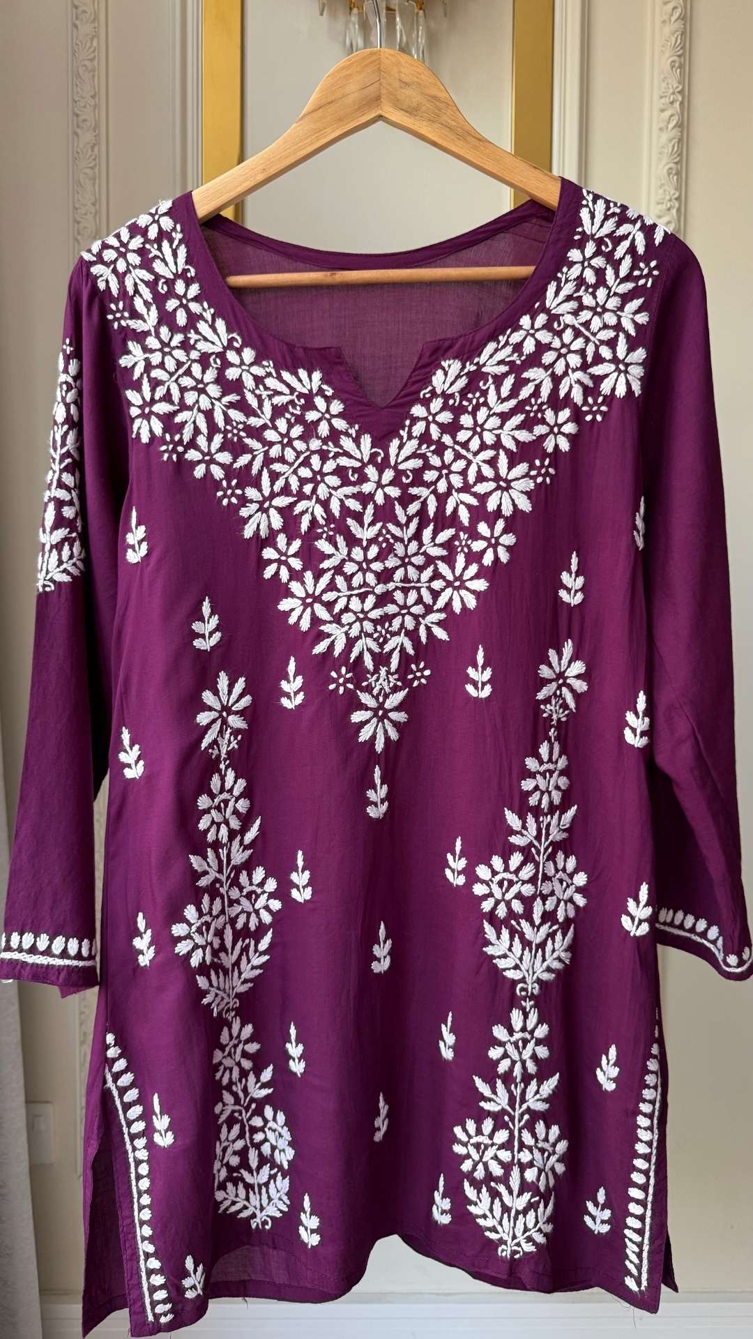 Modal Chikankari Short Top - Wine