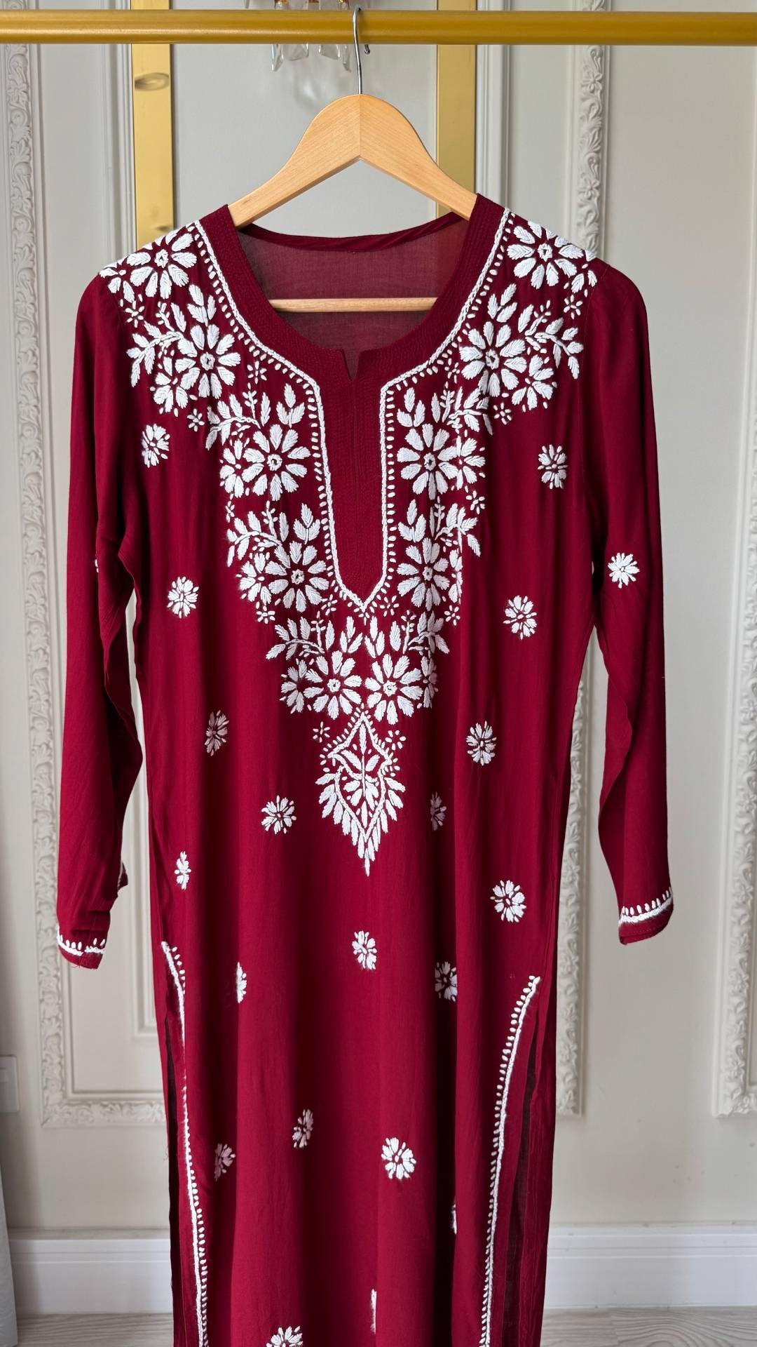 Modal Chikankari Long Kurta - Maroon