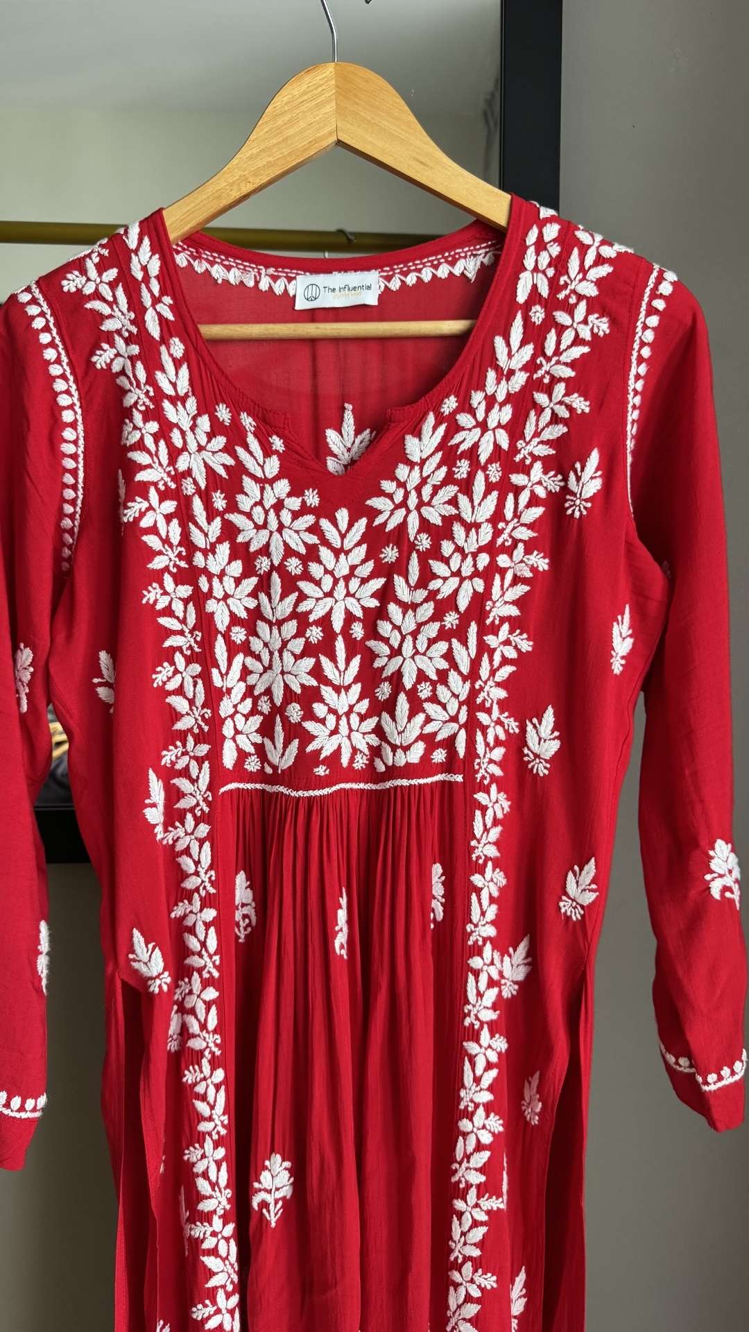 Modal Nyra Cut Chikankari Long Kurta - Red