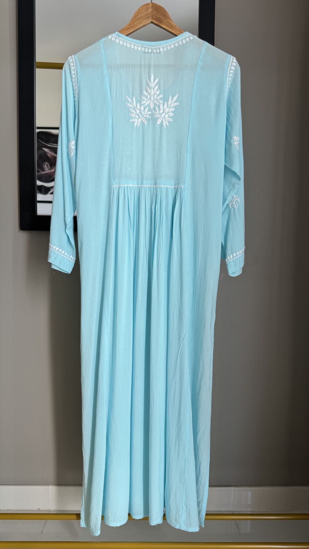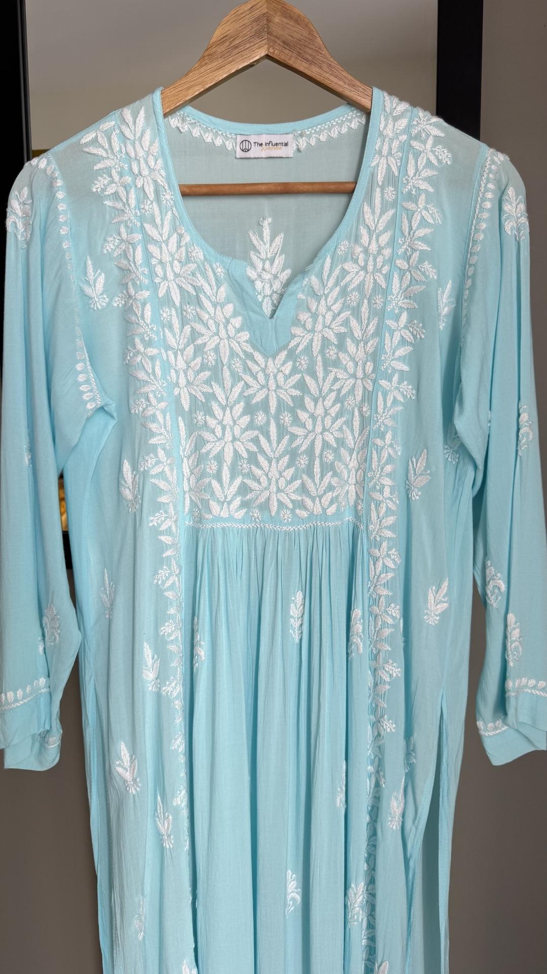 Modal Nyra Cut Chikankari Long Kurta - Sky Blue