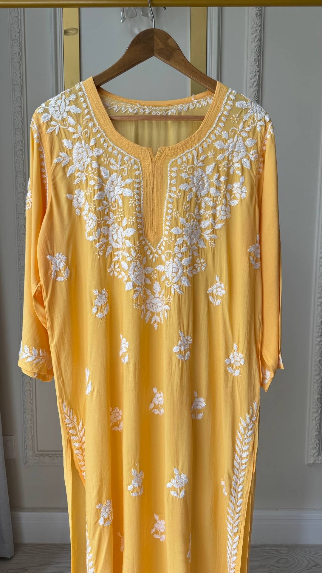 Modal Chikankari Long Kurta - Mango Yellow