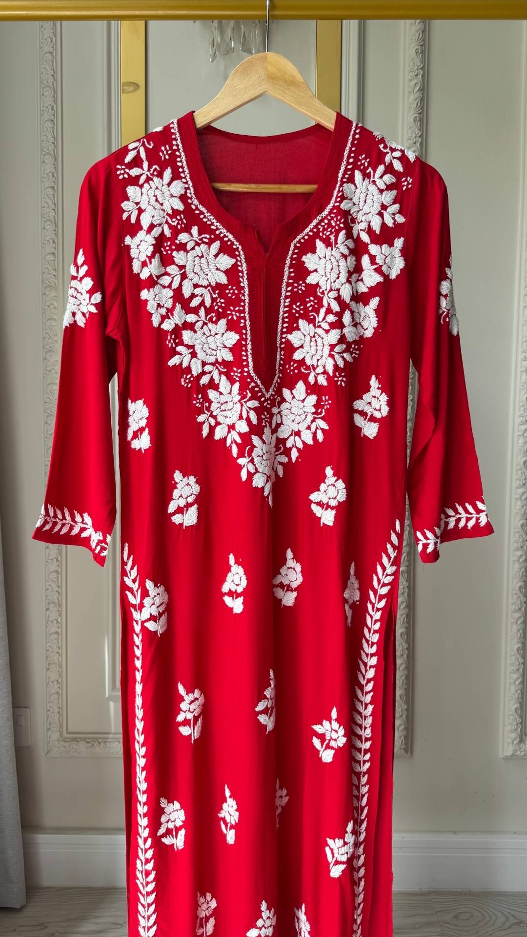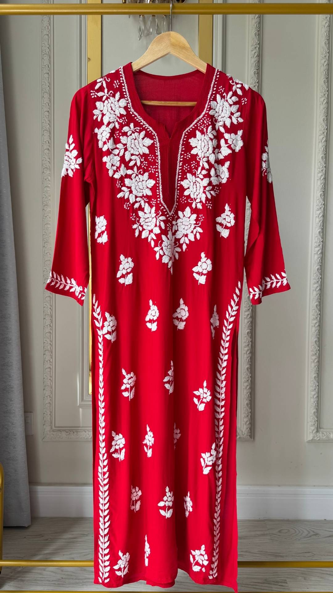 Modal Chikankari Long Kurta - Red