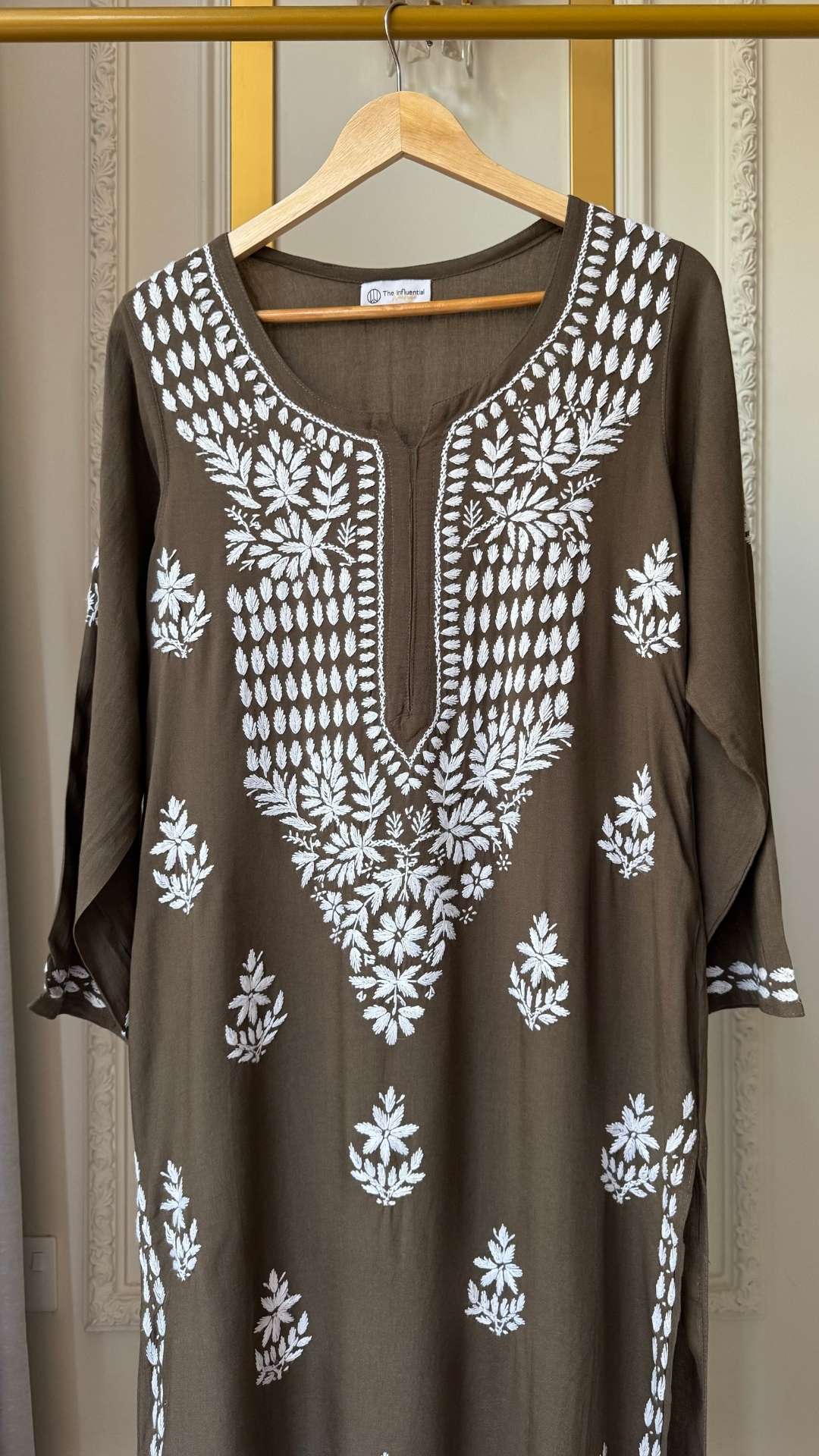 Rayon Chikankari Long Kurta - Brown