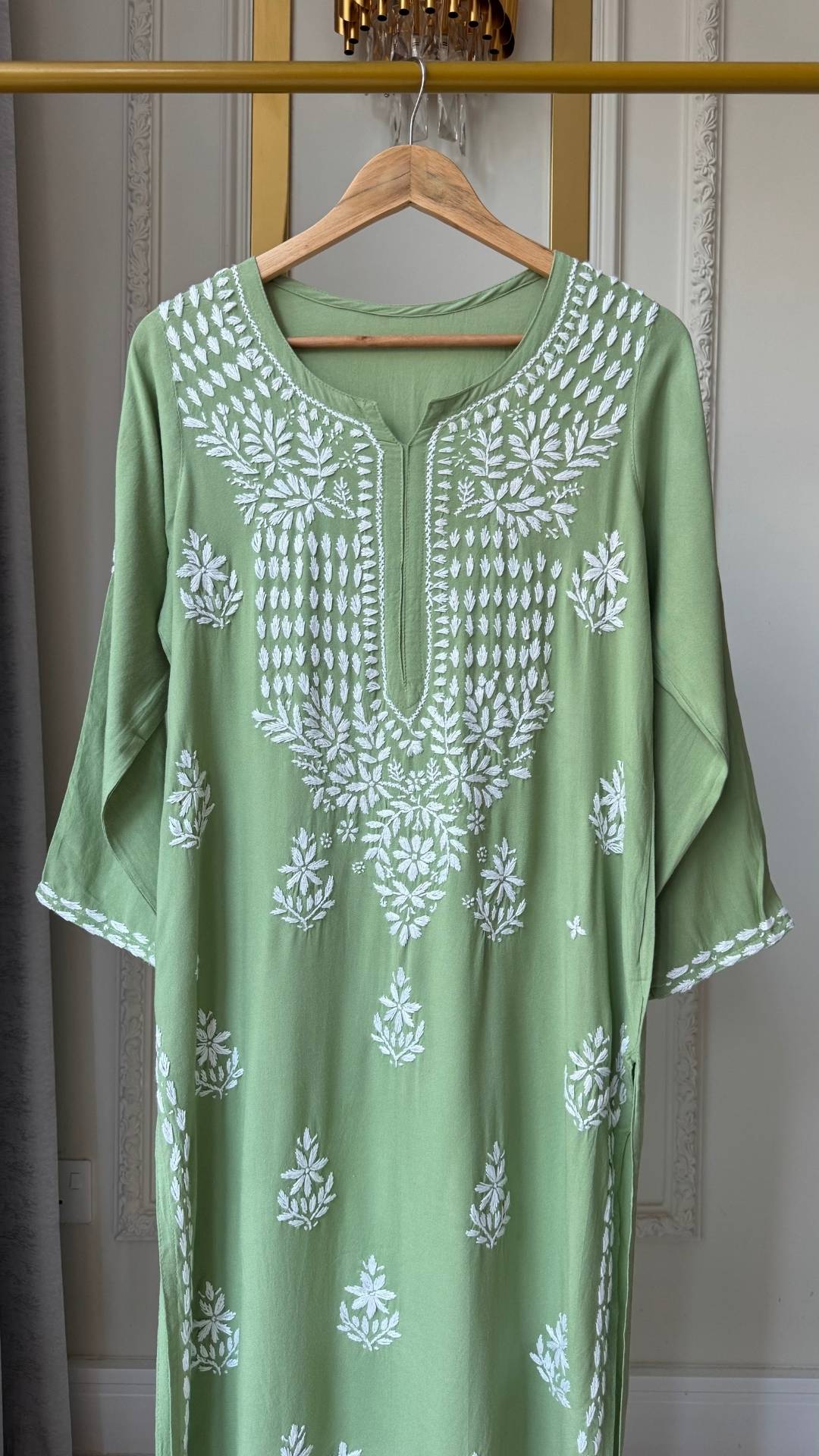 Premium quality rayon kurta with handmade chikankari. Butter soft texture and easy to carry