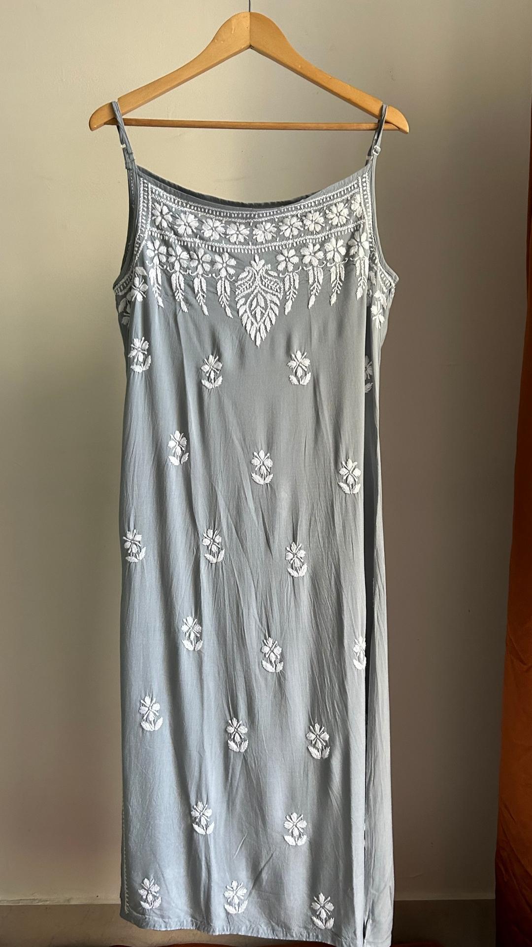 Premium rayon kurta with adjustable straps and handcrafted chikankari. Soft, flowy and non-transparent fabric.