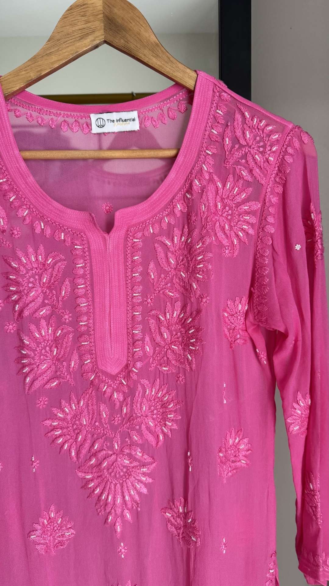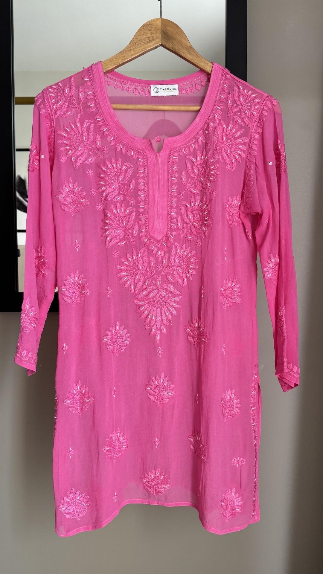 Viscose Georgette Chikankari Pearl Work Short Kurta - Pink