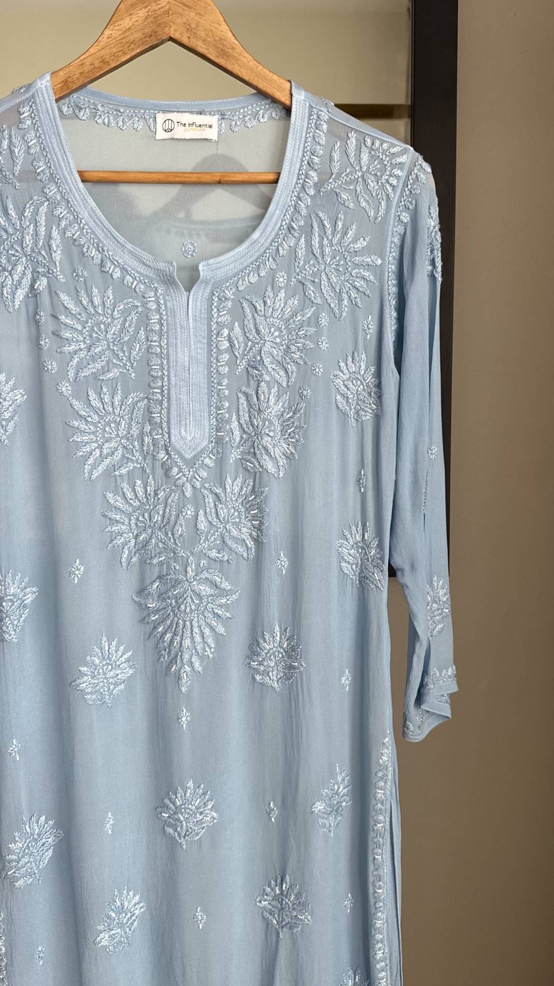 Viscose Georgette Chikankari Pearl Work Short Kurta - Powder Blue