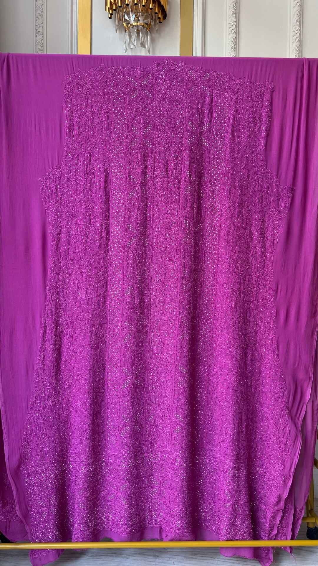 Viscose Georgette Chikankari With Mukesh Suit Material - Purple