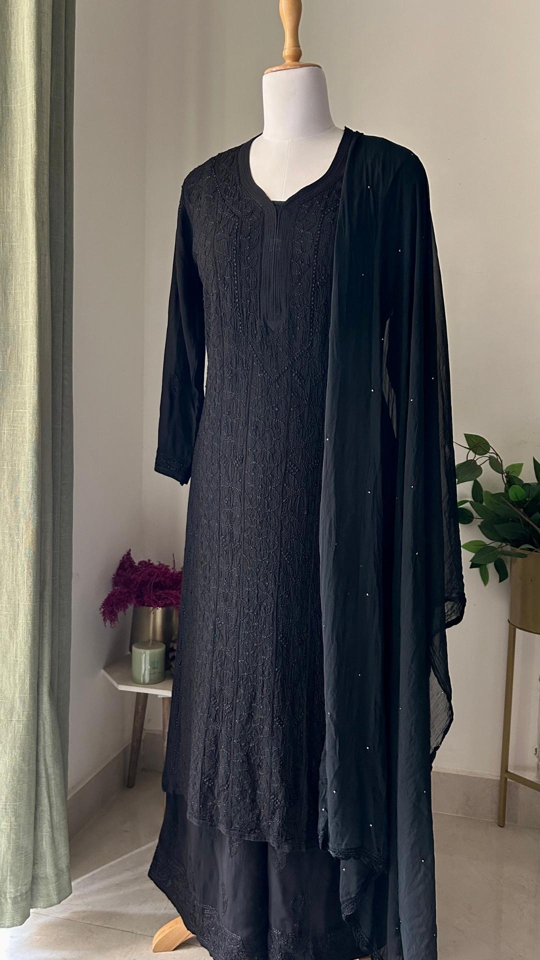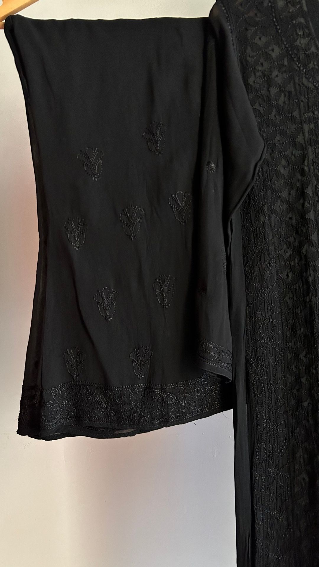 Viscose Georgette Silk Thread Chikankari 4Pc Suit Set - Kohl Black