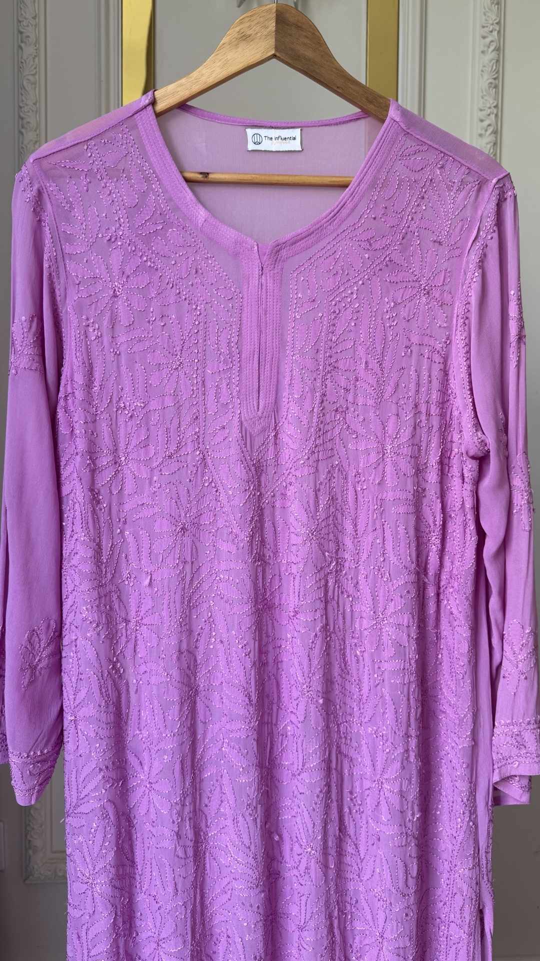 Premium viscose georgette kurta with traditional chikankari, handcrafted using silk threads . Comes with matching mal mal cotton inner slip.