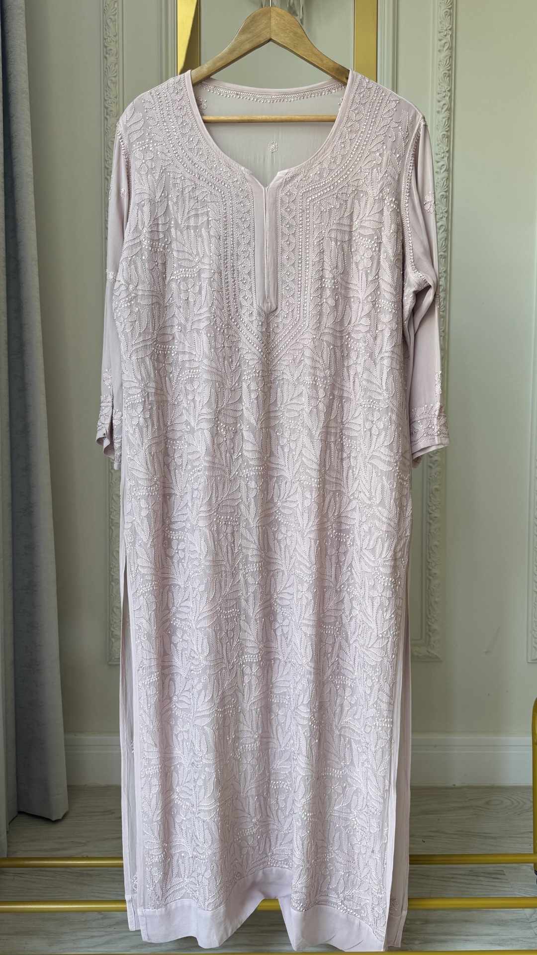 Viscose Georgette Silk Thread Chikankari Long Kurta - Nude Pink