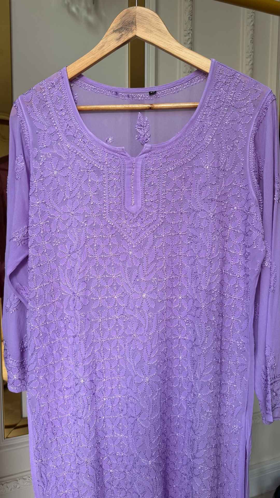 Viscose Georgette Silk Thread Chikankari Short Kurta - Lavender
