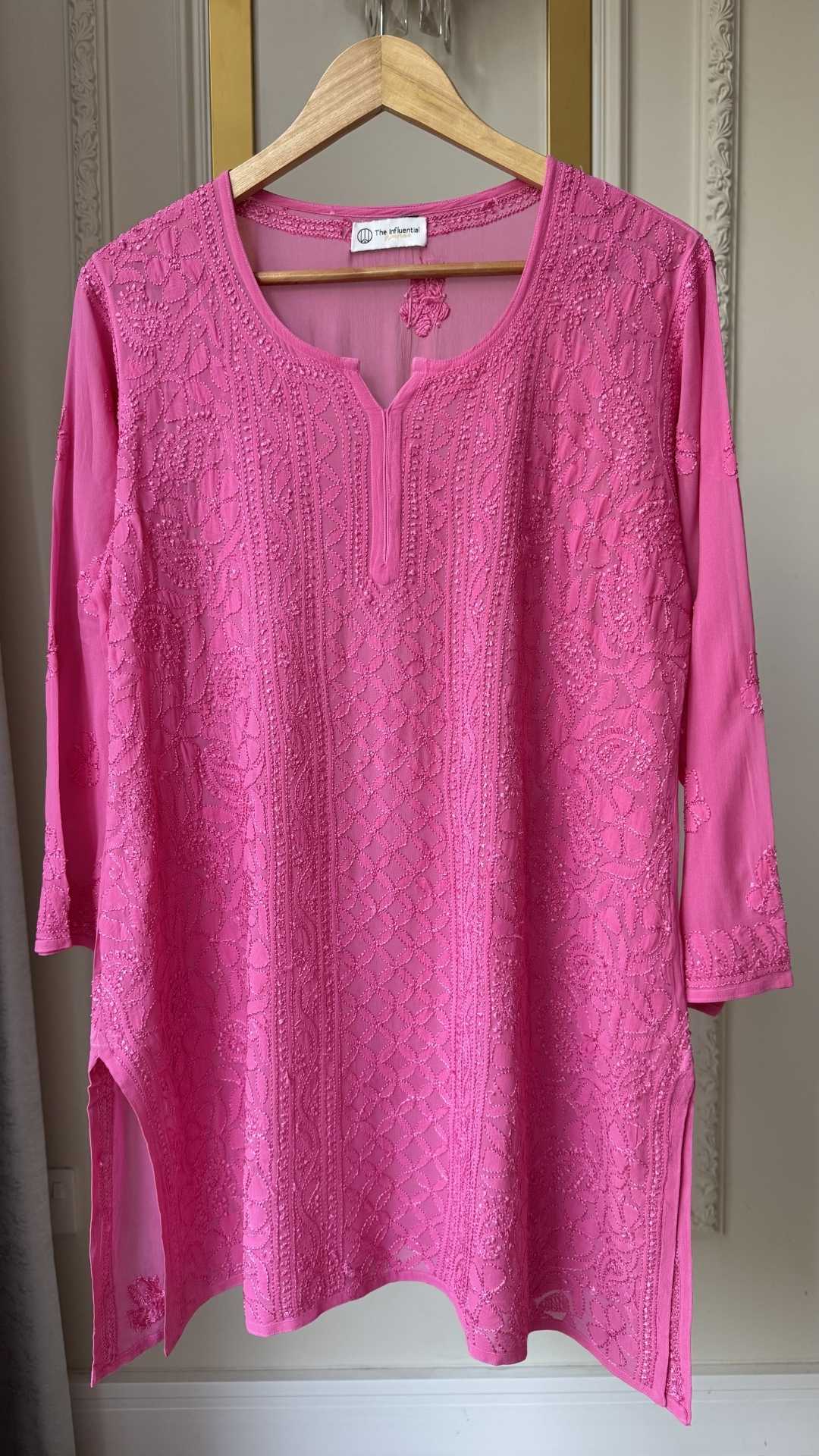 Viscose Georgette Silk Thread Chikankari Short Kurta - Rose Pink